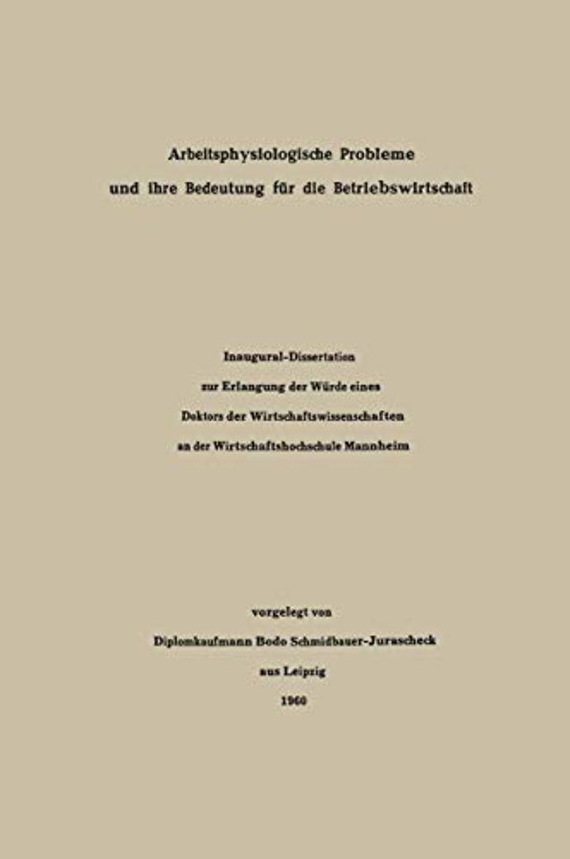 Arbeitsphysiologische Probleme und ihre Bedeutung für die Betriebswirtschaft