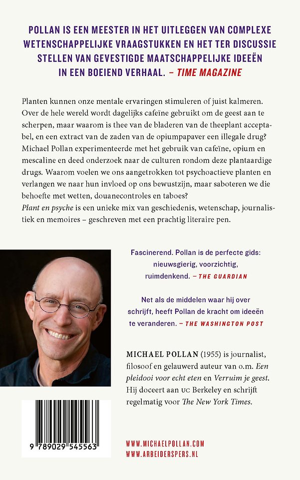 Michael Pollan gebruikte cafeïne, opium en mescaline en ontdekt de culturen rondom deze plantaardige drugs, waarmee hij ons arbitraire denken over het gebruik ervan in een helder daglicht zet. Waarom voelen we ons aangetrokken tot psychoactieve planten en verlangen we naar deze beïnvloeding van ons bewustzijn, maar saboteren we dat met wetten, douanecontroles en beladen taboes?