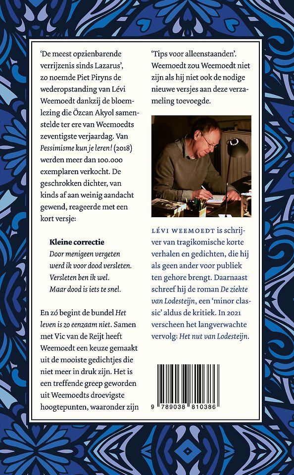 En zó begint de bundel Het leven is zo eenzaam niet. Samen met Vic van de Reijt heeft Weemoedt een keuze gemaakt uit de mooiste gedichtjes die niet meer in druk zijn. Het is een treffende greep geworden uit Weemoedts droevigste hoogtepunten, waaronder zijn ‘Tips voor alleenstaanden’. Weemoedt zou Weemoedt niet zijn als hij niet ook de nodige nieuwe versjes aan deze verzameling toevoegde.
