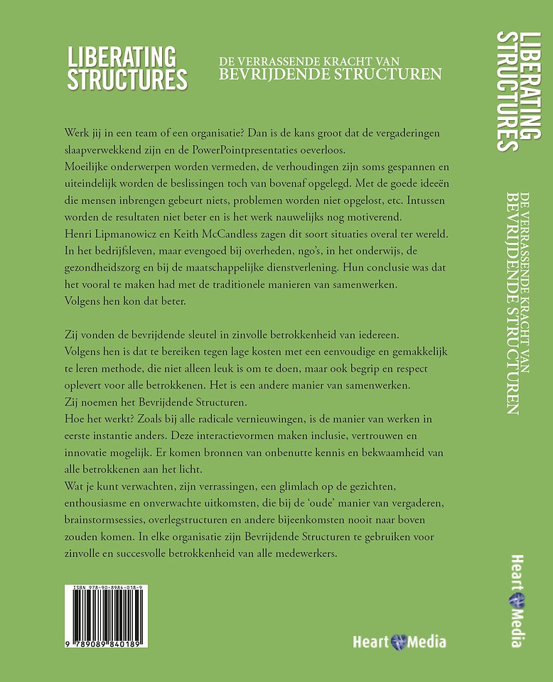 Wat je kunt verwachten, zijn verrassingen, een glimlach op de gezichten, enthousiasme en onverwachte uitkomsten, die bij de ‘oude’ manier van vergaderen, brainstormsessies, overlegstructuren en andere bijeenkomsten nooit naar boven zouden komen. Elke organisatie kan Bevrijdende Structuren inzetten voor zinvolle en succesvolle betrokkenheid van alle medewerkers.