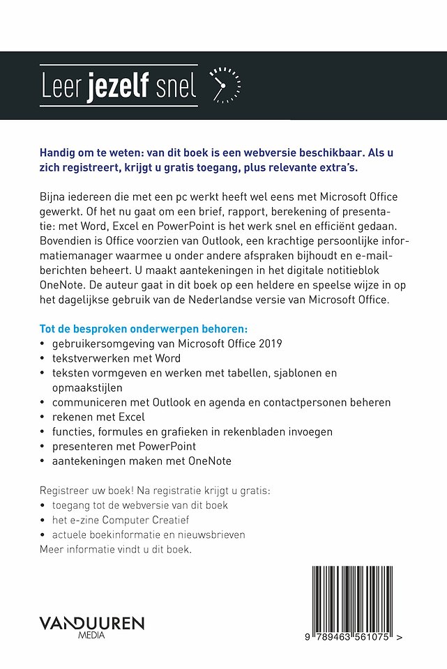 Bovendien is Office voorzien van Outlook, een krachtige persoonlijke informatiemanager waarmee u onder andere afspraken bijhoudt en e-mailberichten beheert. U maakt aantekeningen in het digitale notitieblok OneNote. De auteur gaat in dit boek op een heldere en speelse wijze in op het dagelijkse gebruik van de Nederlandse versie van Microsoft Office.