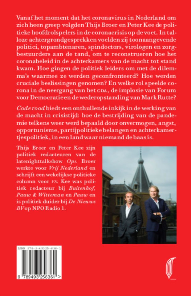 'Code rood; biedt een onthullende inkijk in de werking van de macht in crisistijd: hoe de bestrijding van de pandemie telkens weer werd bepaald door onvermogen, angst, opportunisme, partijpolitieke belangen en achterkamertjespolitiek, in een land waar niemand de baas is.