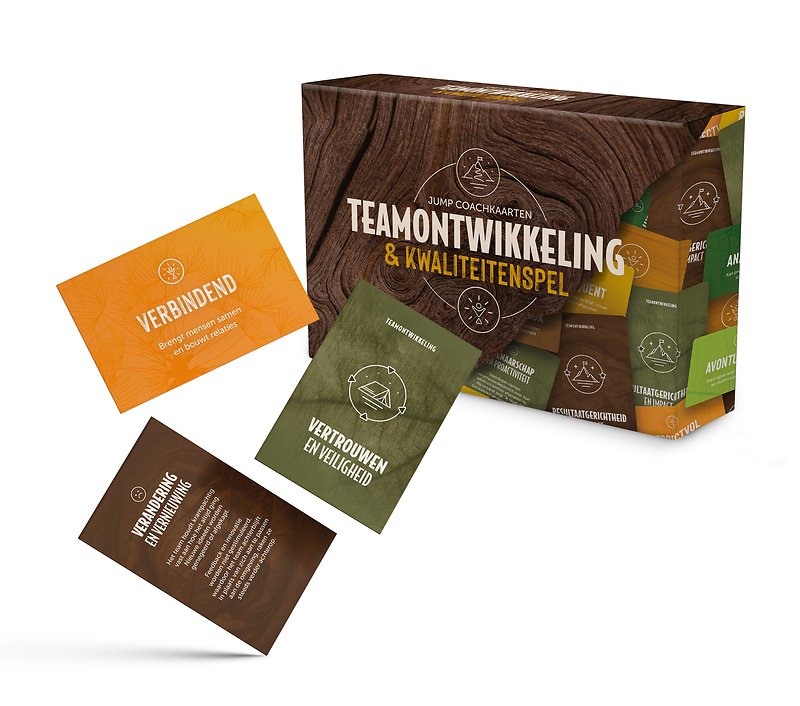 Het Teamontwikkeling- en Kwaliteitenspel bestaat uit twee spellen die los van elkaar of in samenhang gespeeld kunnen worden: twee krachtige spellen voor (team)coaching en training in één stijlvolle box (groot kaartformaat).